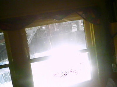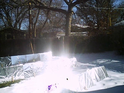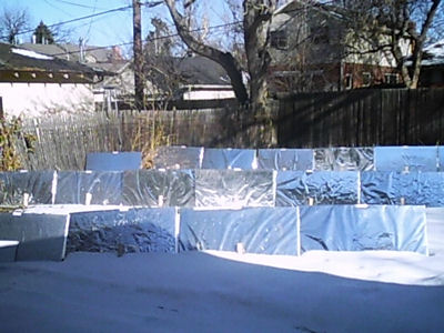 Solar screen inside to block some sun and collect good heat heat coming from 24 - 2 ft x 4 ft mylar mirrors (the glass ones would break in the cold)