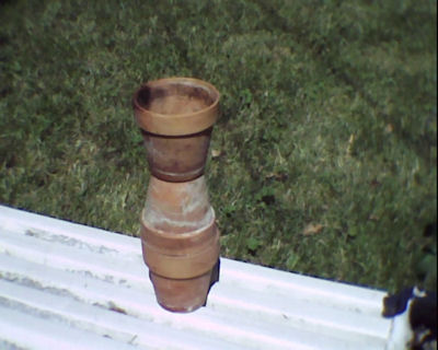 Experimenting with a bigger pot on top. Rims of pots were filed flat using sidewalk cement and glued with Guerrilla glue (regular - not fast drying seemed to work better). Bottom hole plugged with cement in the hole.